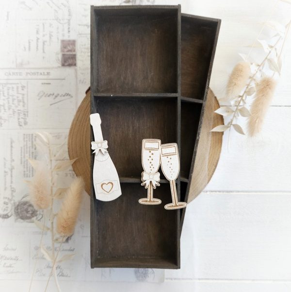 Wedding / Love champagne bottle and glasses set 010 decorative laser cut chipboard element.
